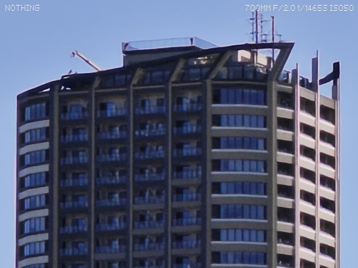 特に望遠レンズを搭載していないにも関わらず、光量がある環境では5倍ズームぐらい、低光量の時は2~3倍ぐらいまでは実用性がある印象です。望遠レンズを搭載しているPhone (3a) と比べると、やはり望遠はPhone (3a) の方が強いですが、それに迫るぐらいの実力と言える結果でした。