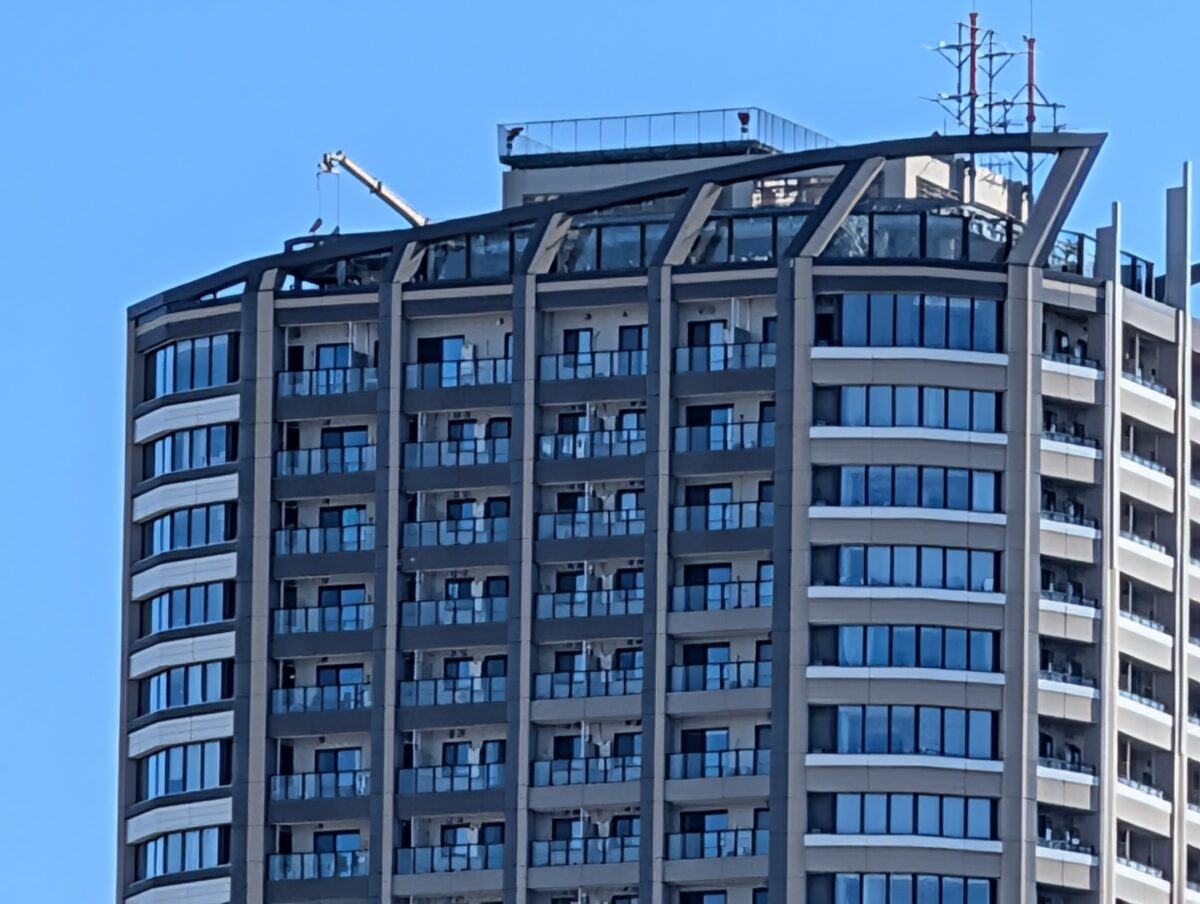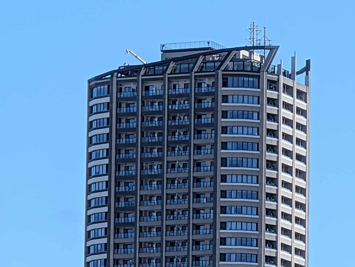 2倍ズームも解像感が良いですが、鉄塔部分の赤色が周りに滲んだ感じになっているのが気になります。
