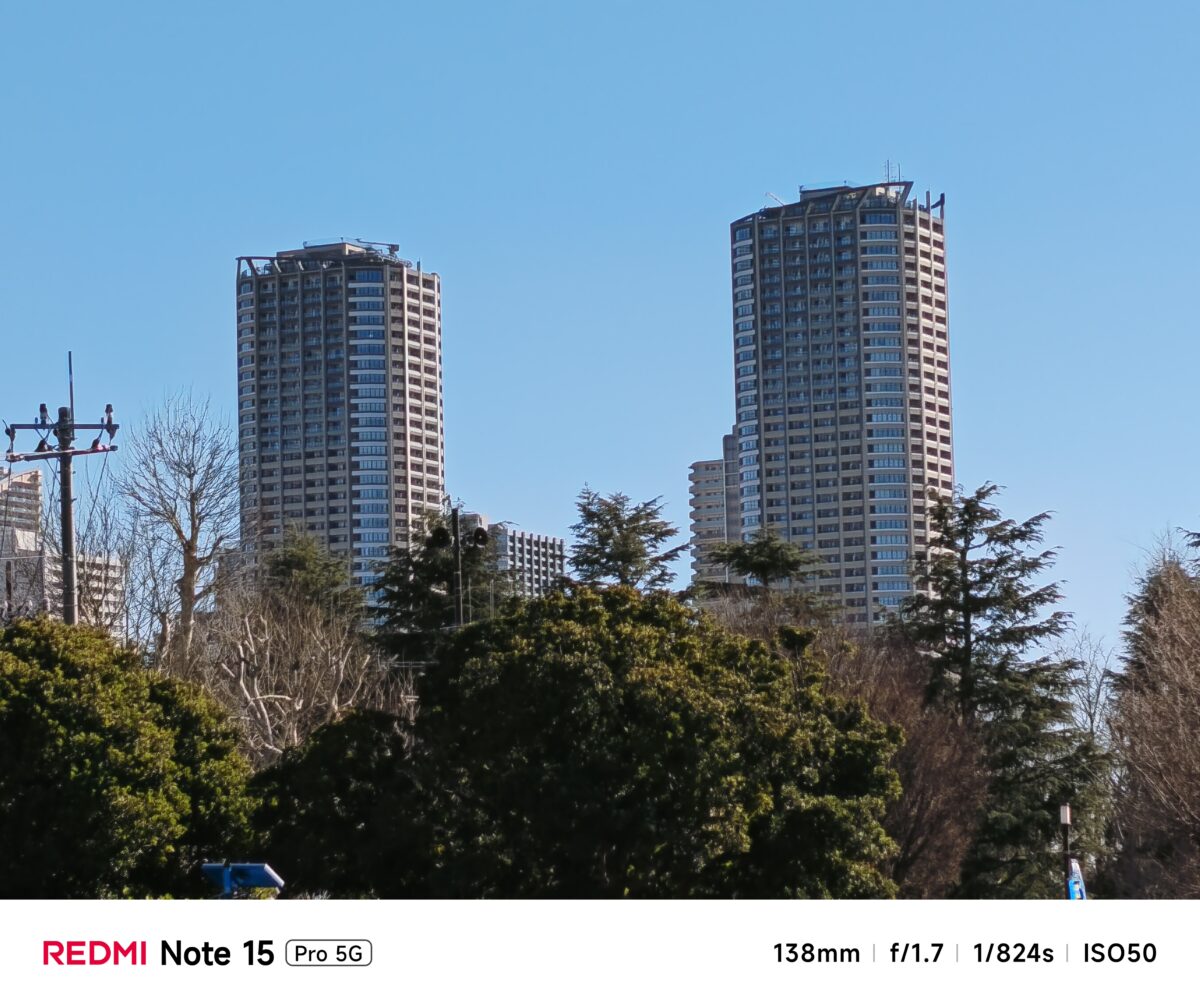 REDMI Note 15 Pro 5Gのカメラは、ミドルレンジの中でもかなり上位で良い印象です。超広角は800万画素で解像感が不足しがちですが、等倍、ズームでの撮影は思った以上に良い結果でした。