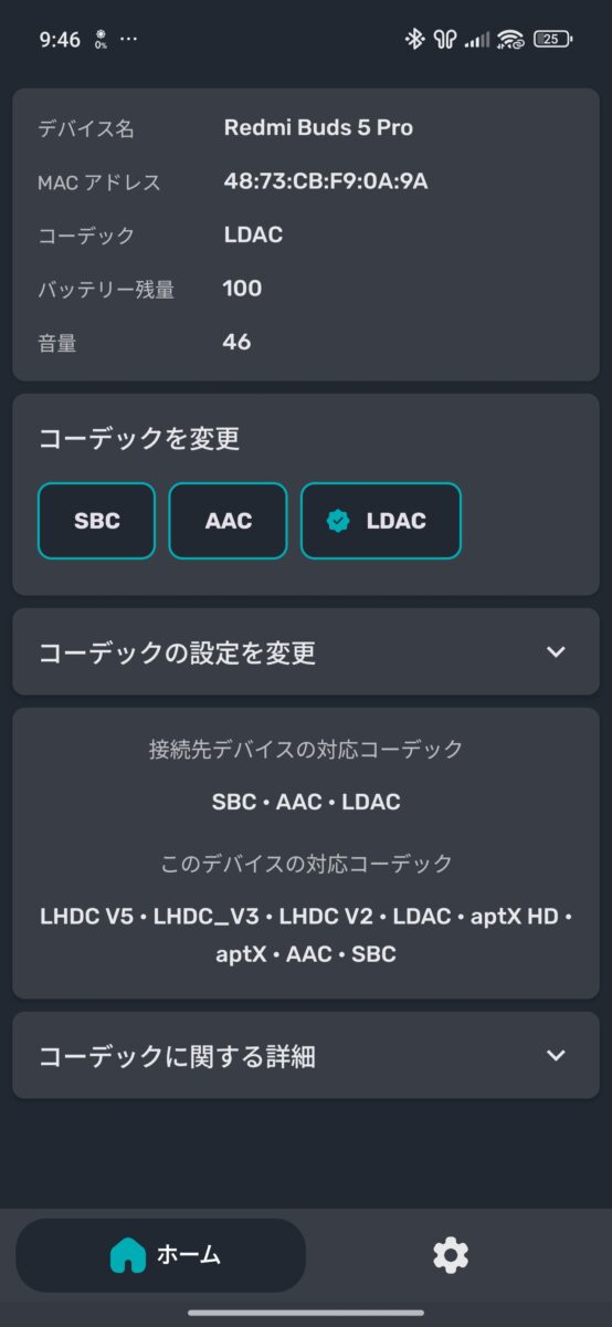LDAC、LHDCには対応しているので高音質で楽しみたい方はこちらで接続するようにしましょう。