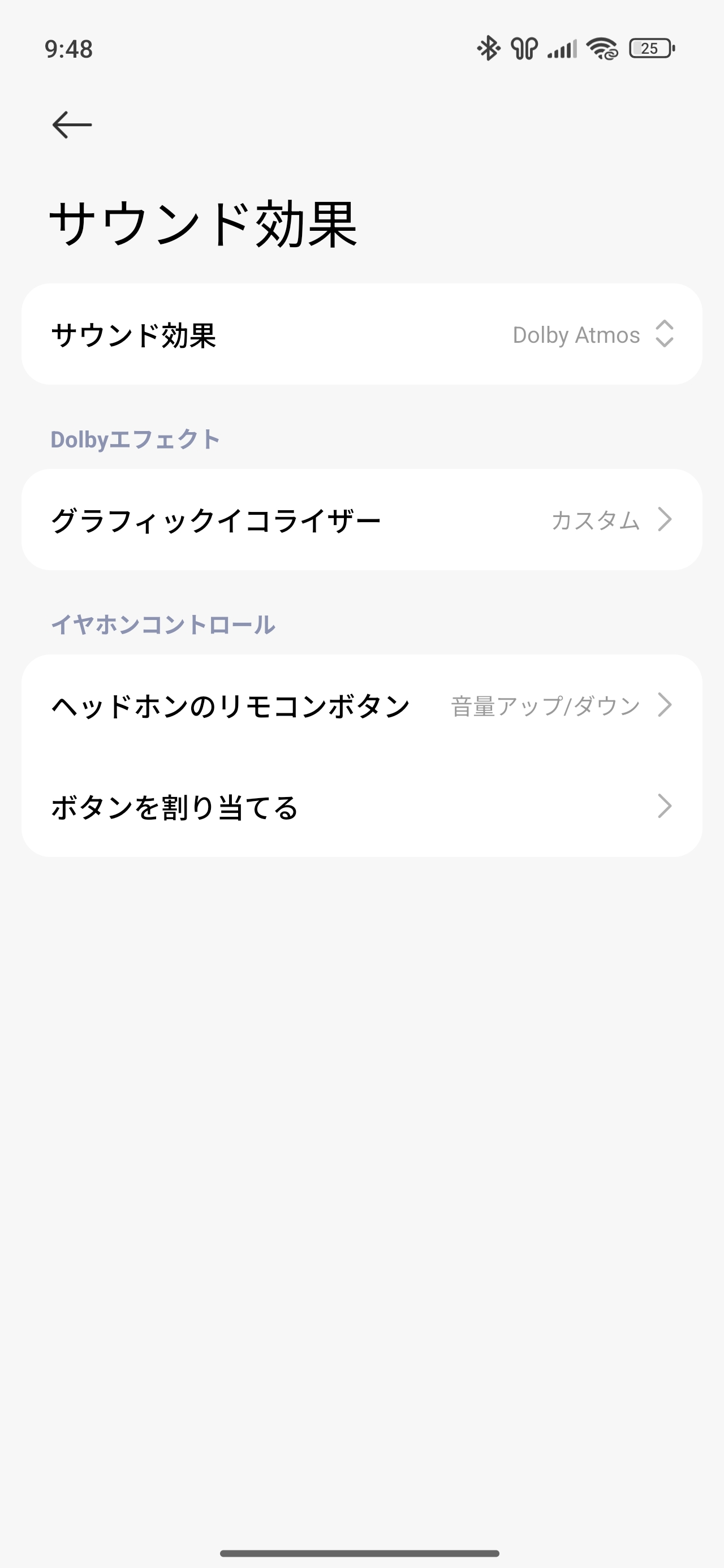 サウンド効果はDolby Atomosとオリジナルの2択から選ぶことができます。また、EQ機能もありミドルレンジとしては特に問題ないでしょう。