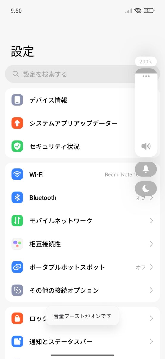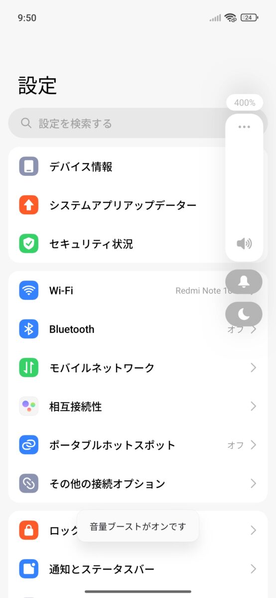 音量ブーストがあり、音量はMAXで400%まで設定可能。まあ、何を基準としてブーストとしているのかは不明ですが、こういったブーストと表示するスマホとしてXioamiの他にOPPOも同じような表示になります。