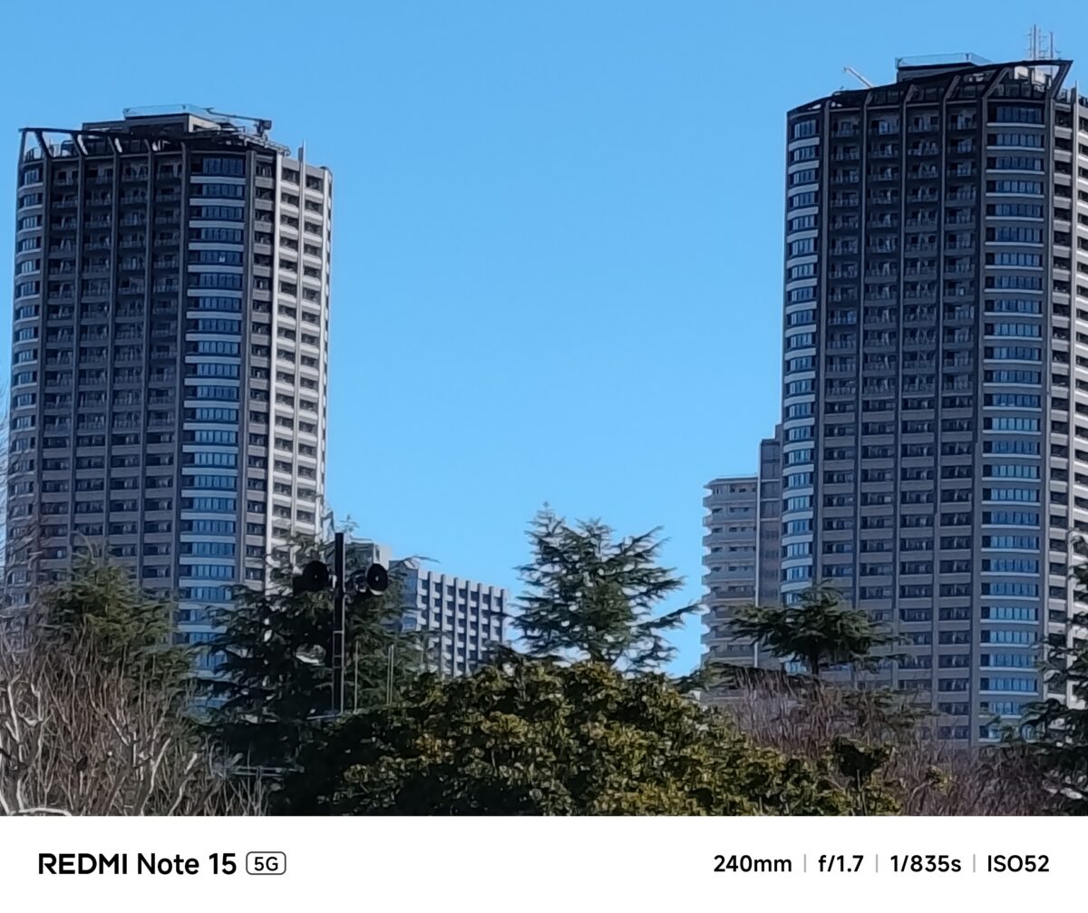 4倍ズームもREDMI Note 15 Pro 5G、REDMI Note 15 5G、Phone (3a) で印象はほぼ変わりませんミドルレンジとしては素晴らしいと思います。
