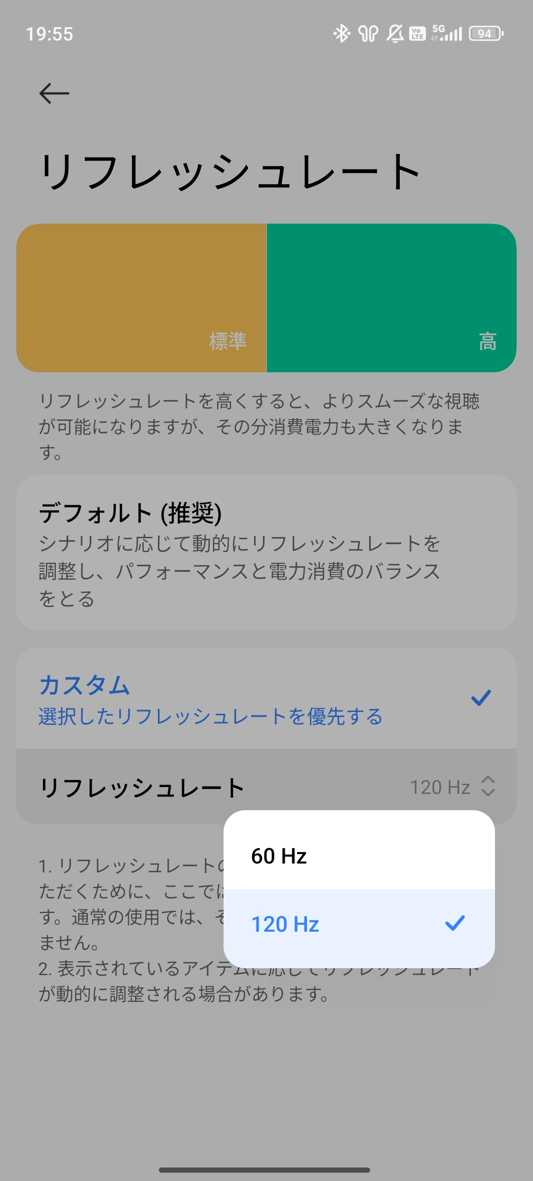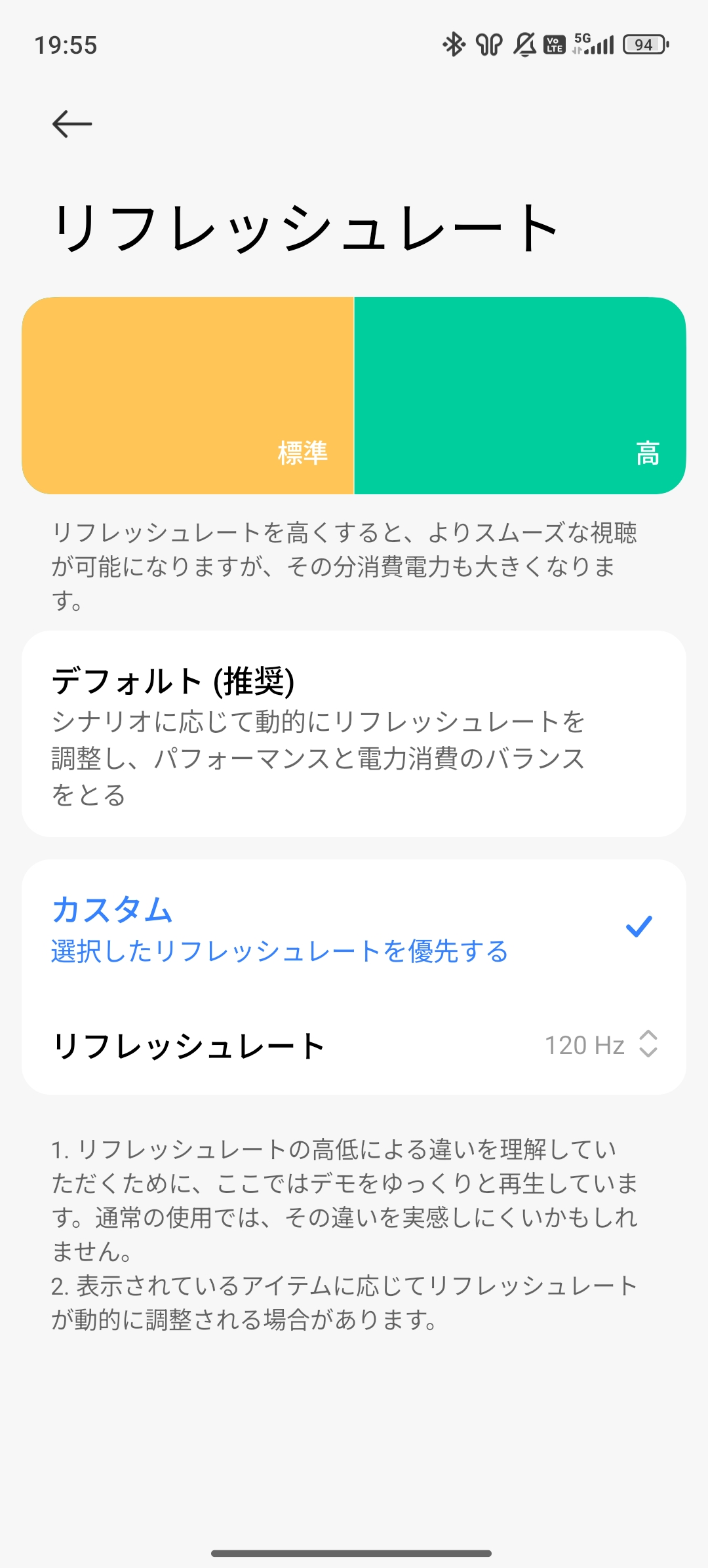 - リフレッシュレートはアプリ毎に設定が可能