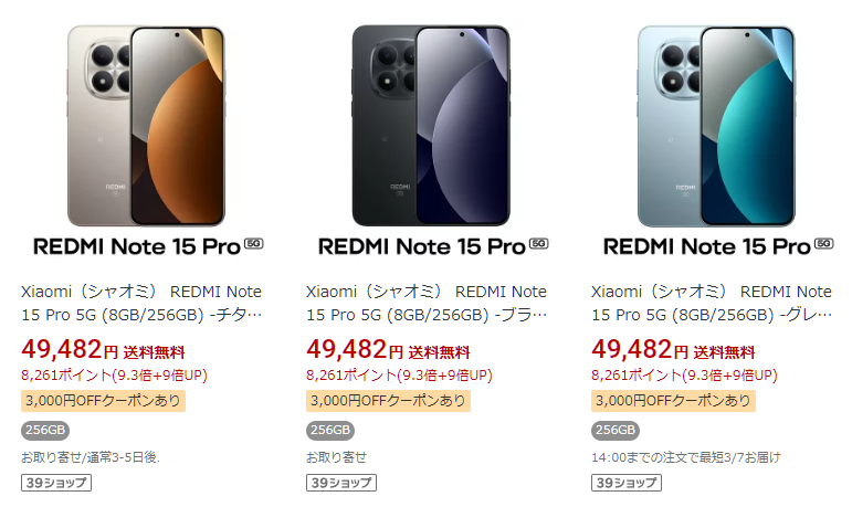 【3/31 更新】Xioami「REDMI Note 15 Pro 5G」のセール・キャンペーン情報、どこで買うと安いのか?最安…