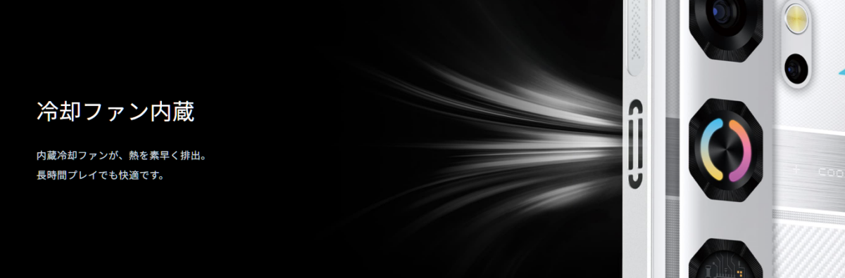 SoC性能がミドルレンジなので、万人向けのゲーミングスマートフォンという印象ではないですが、冷却ファン搭載やショルダートリガーなどゲームに特化した内容になっています。