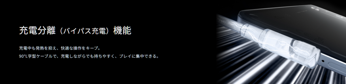 nubia Neo 5 GTではバイパス充電に対応。長時間ゲームを楽しめます。