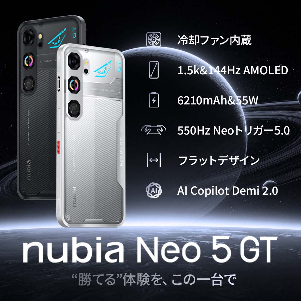 ZTEから「nubia Neo 5 GT 5G」が2026年4月23日に発売されます。ミドルレンジ帯のゲーミングスマートフォン。
